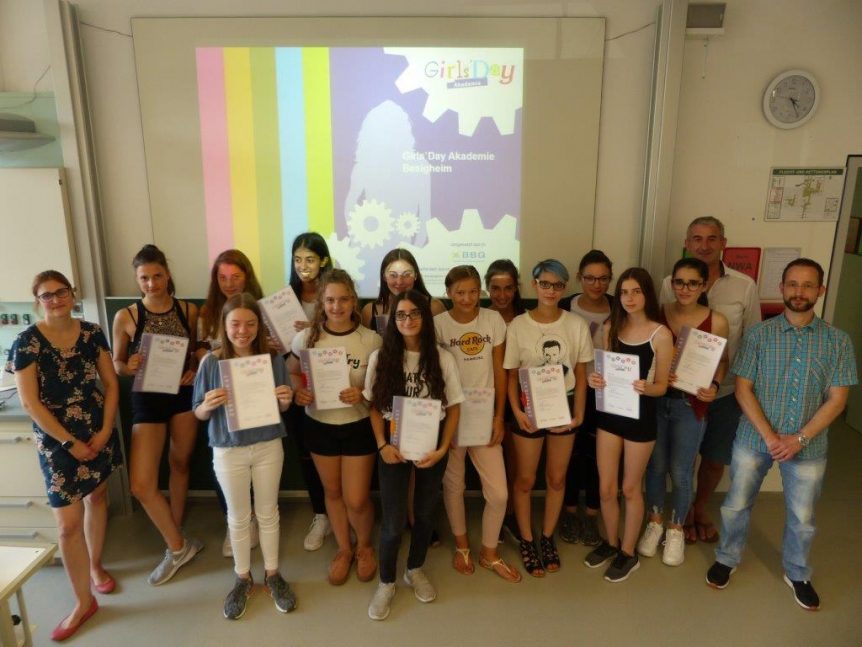 Vierzehn Schülerinnen aus der Maximilian-Lutz-Realschule Besigheim tauchten in die Welt der Technik ein. Sie haben zusammen mit Mitarbeitern der Firma Bosch einen Schminkspiegel mit Beleuchtung gebaut. Dabei wurde auch gelötet und montiert.