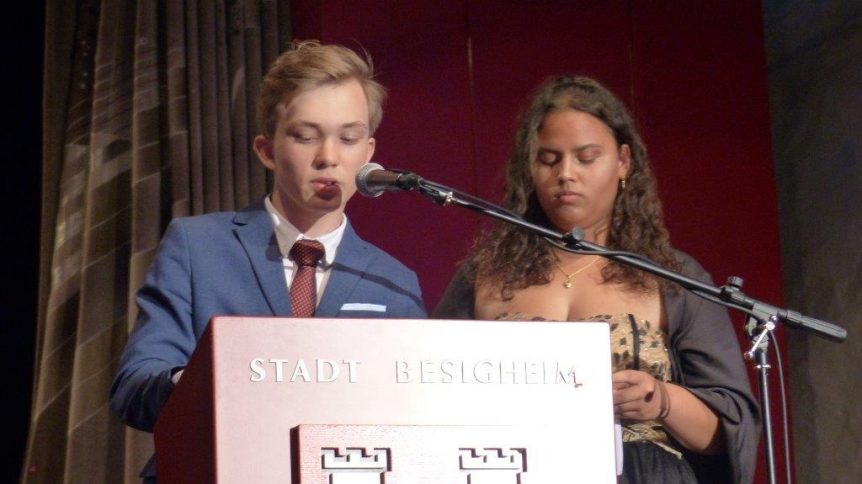 Den Auftakt zur Veranstaltung boten Grußworte vom ersten stellvertretenden Bürgermeister Stadtrat Friedrich Köhler, gefolgt von der Preisübergabe durch Timo Werder von unserem Bildungspartner, der VR-Bank Neckar-Enz, für die besten Durchschnittsleistungen. Gleich zweimal wurde der Preis für den Traumschnitt 1,0 an Emil Schäuffele und Tim Treiber vergeben und einmal für das beste Mädchen an Lisa-Salome Strasser mit einem Schnitt von 1,3.