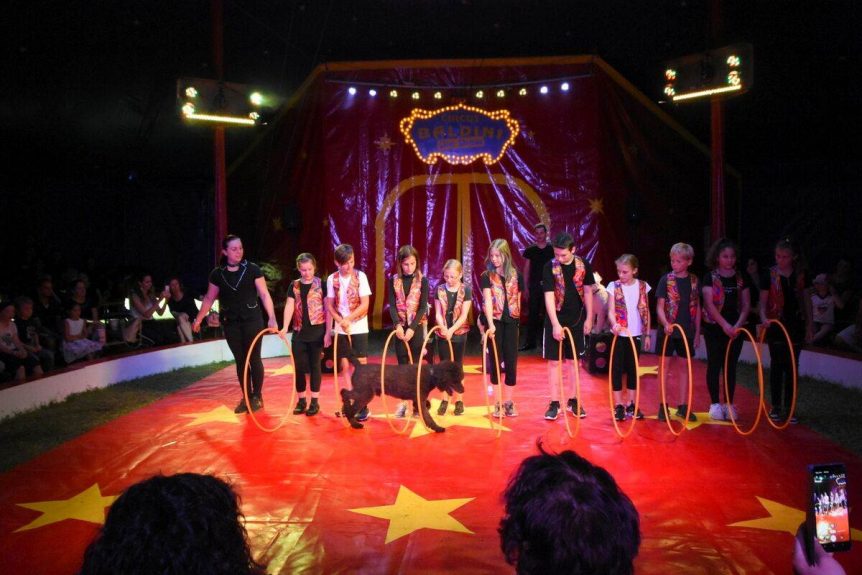 Der Zirkus Baldini gab mit den Schülern der 5. und 6. Klasse eine wunderbare Zirkusvorstellung! Die Kinder wurden zu Hundedompteuren, Zauberern, Luftakrobaten am Römischen Ring oder am Trapez. Es gab einen Zirkusdirektor, einige Bodenakrobaten, Pony-Dompteure, Clowns, Tellerdreher, Jongleure, Seiltänzer, Feuerspucker und noch vieles mehr. Und das alles in echter Zirkusatmosphäre in einem großen Zweimastzelt. Die Eltern und die Kinder waren begeistert! Hier einige Bilder dazu: