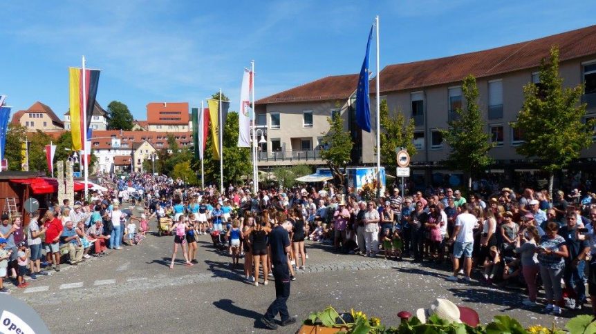 Die MLRS nimmt mit einem Motivwagen am Winzerfestumzug teil