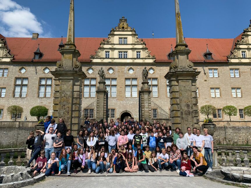 Nach langen Monaten voller stets von neuem sich zerschlagender Pläne und mühsamem Singen hinter dichten Masken und mit großem Abstand, konnten die 125 Schülerinnen und Schüler des Musikprofils letzte Woche endlich aufatmen und zur alten Form zurück finden. Zum ersten Mal in der wunderschönen Atmosphäre von Schloss und Ort Weikersheim, bei Kaiserwetter, mit blühenden Gärten und optimalen räumlichen Bedingungen: einen besseren Wiedereinstieg hätten wir uns alle nicht wünschen können. Entsprechend entspannt und arbeitseifrig war auch die Stimmung bei den Chorprobentagen von 25. bis 27. April. Stundenlang wurde gesungen, geschauspielert und getanzt, weit bis in den Abend hinein. Ziel der ganzen Probenarbeit sind die Musicalaufführungen am 22./23. Juni. Auf die Bühne kommt ein eigens für uns von Herrn Neumann geschriebenes Stück: „Rebellen“. Erzählt wird die Geschichte von Jugendlichen, die in zwei Teilen eines ausgedachten Landes leben, das vor langer Zeit durch einen Streit mittels einer Mauer getrennt wurde. Sie lernen sich kennen, freunden sich miteinander an und leiten so schließlich ein friedliches Ende in die Wege. Zu hören sind poppige, rockige Titel, die jeder kennt und die die Jugendlichen gerne singen. Eine Band, die unser Referendar, Herr Zeltner zusammenstellt, wird uns live begleiten. Der Kartenvorverkauf beginnt noch vor den Pfingstferien!